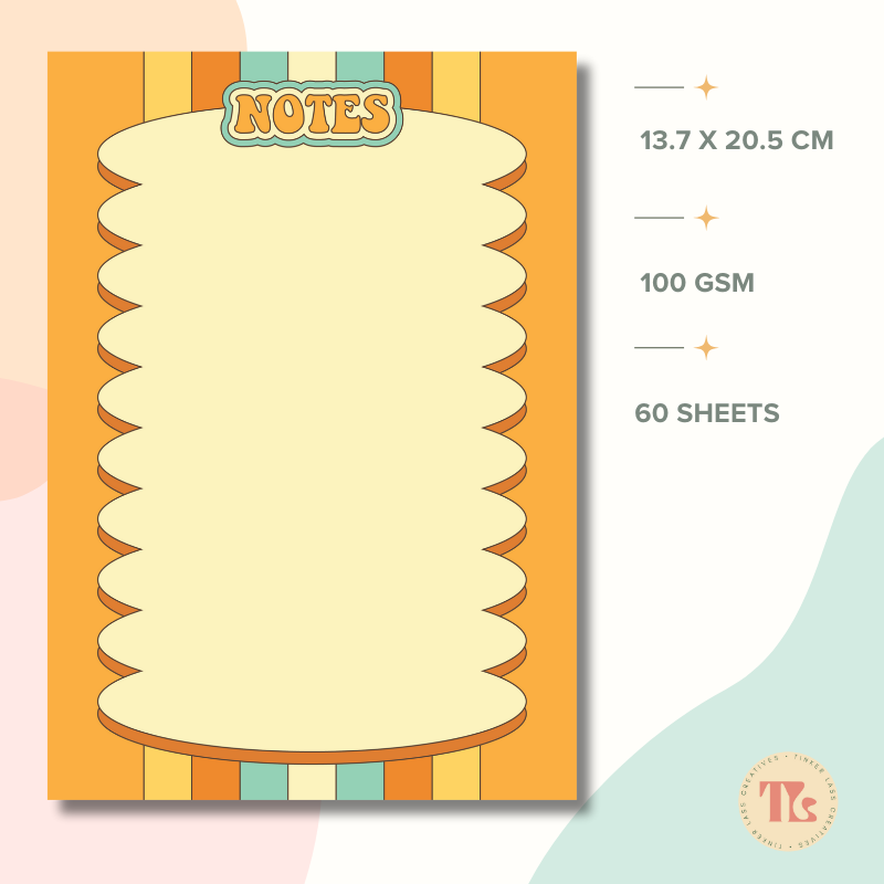 Turn up the retro energy with our Groovy Vibes Fold Duo Notepad Refill! Featuring bold oranges, earthy browns, and sunny yellows in funky, swirling patterns, this design brings the spirit of the '70s straight to your desk. It's the perfect refill for free spirits, creatives, and anyone craving a blast from the past.