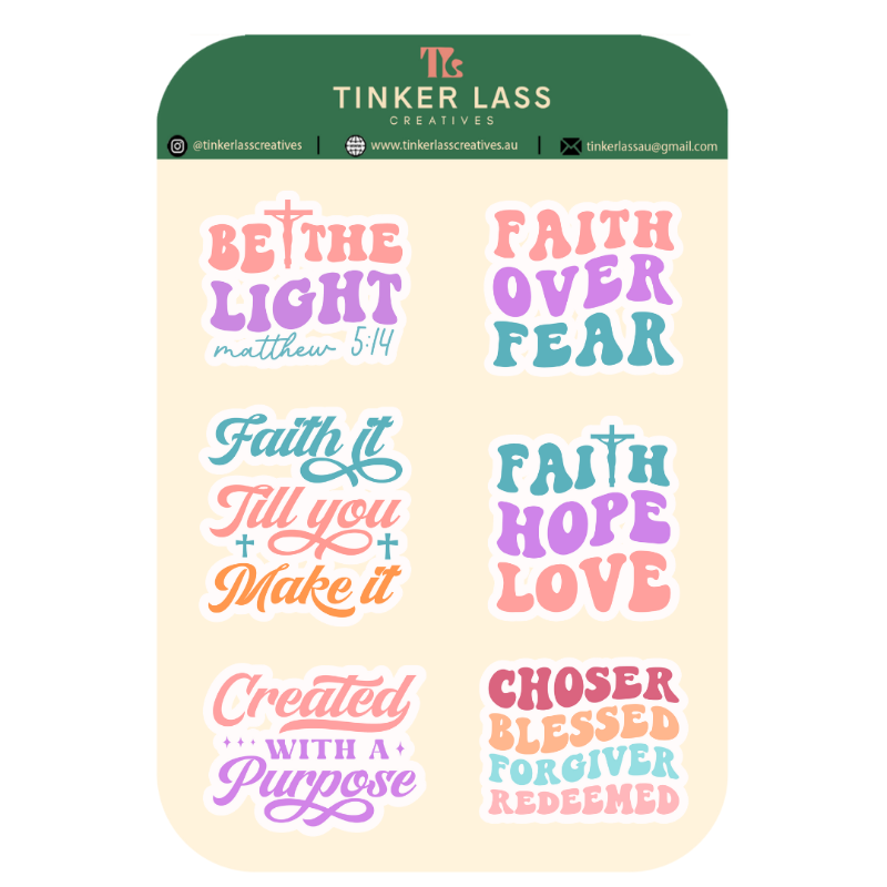 Each sticker encapsulates a unique message of hope, love, and spiritual strength, designed to uplift and resonate with your beliefs. From elegant cross designs to powerful scripture verses, adorn your belongings with these stickers to carry a piece of your faith wherever you go. Perfect for laptops, water bottles, notebooks, and more.